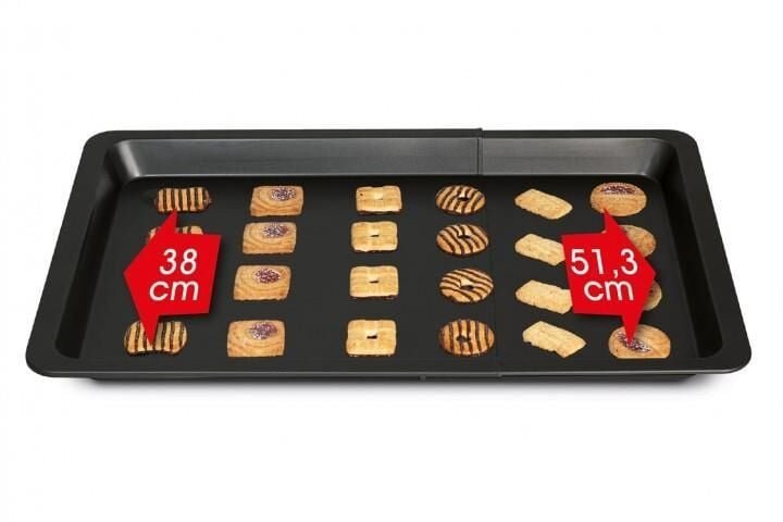 Genişletilebilir dikdörtgen tepsi, değişken boyutları sayesinde şefleri memnun etmek için standart veya XXL formatlarda yemek pişirmek için idealdir.