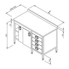 Paslanmaz çelik taban, ara raflı, sürgü kapılı ve blok çekmeceli