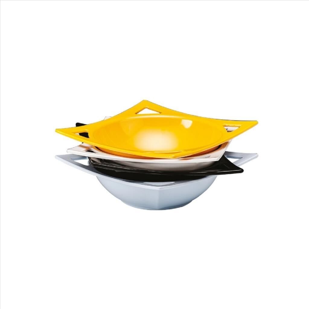 Klasik ve şık tasarıma sahip melamin kare siyah kase şefinizin sanatsal mutfak kreasyonlarını çerçevelemek için mükemmel bir renktir. Ek olarak, kare şekli geleneksel kaselere göre çağdaş bir görünüm verir.